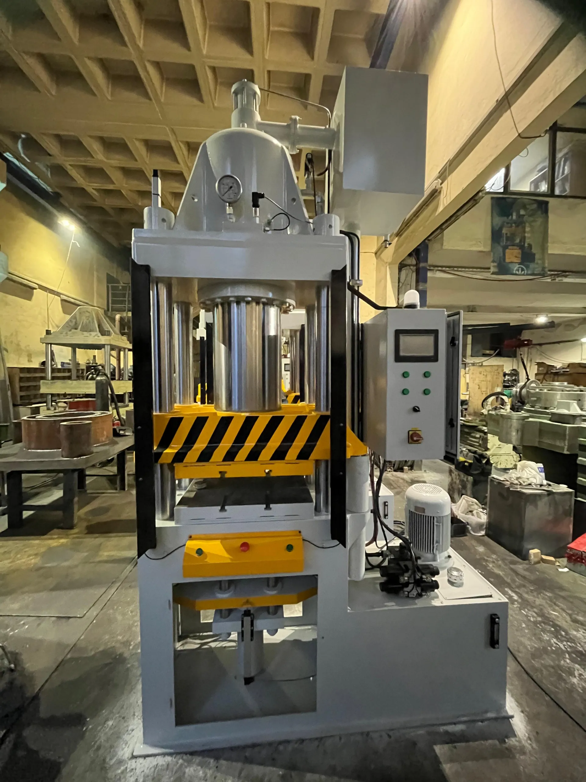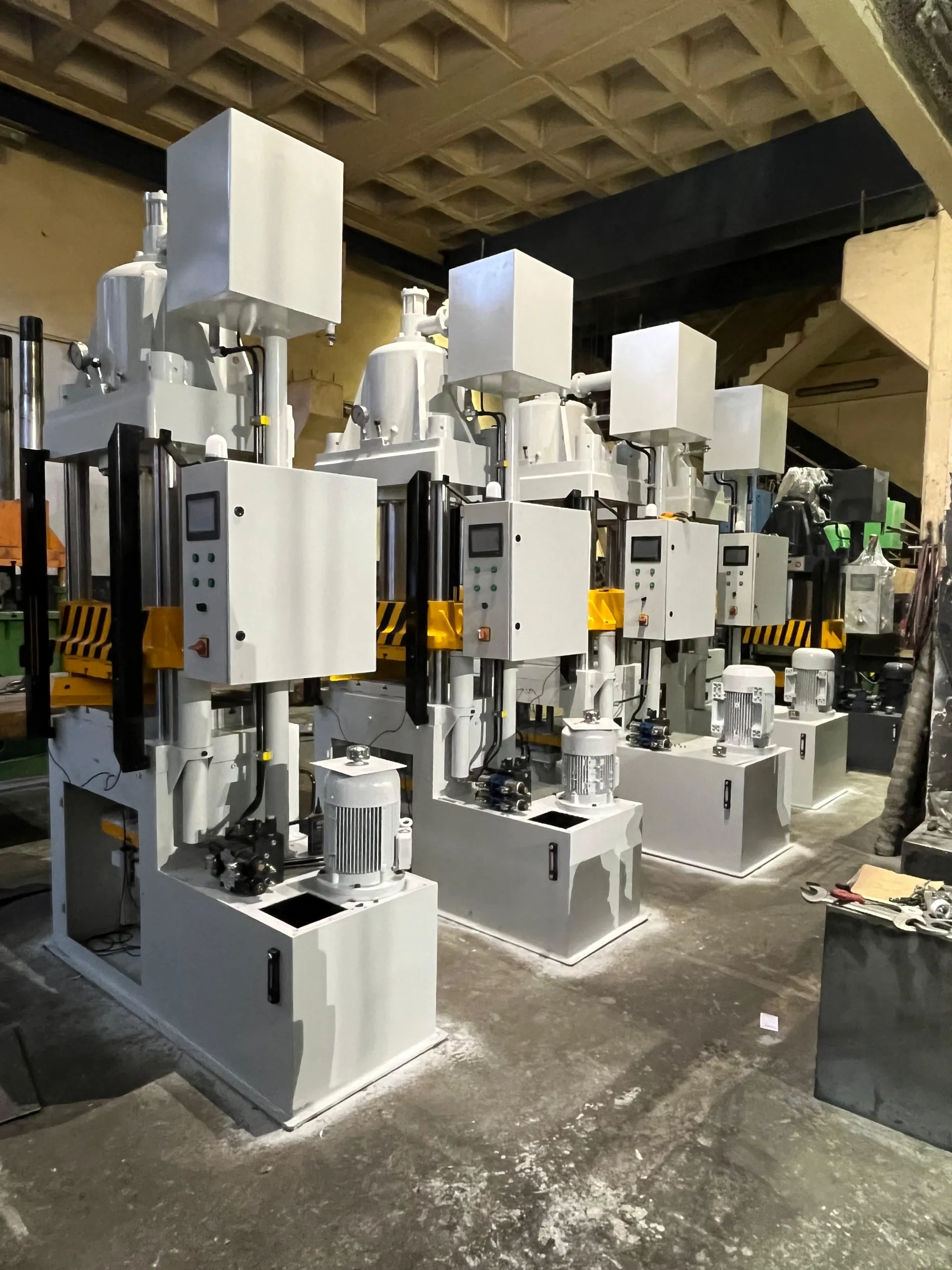 Bu presler, ağırlıklı olarak otomotiv endüstrisinde kullanılmakta olup minimum 100 ton, maksimum 1000 ton kapasitelerde ve müşteri taleplerine uygun ölçülerde üretilmektedir. Üretimde kullanılan güvenilir ve yüksek kaliteli malzemeler sayesinde preslerimizin uzun ömürlü ve dayanıklı olması hedeflenmektedir. Bu presler özellikle balata (sürtünme malzemesi) üretimi için tasarlanmıştır.