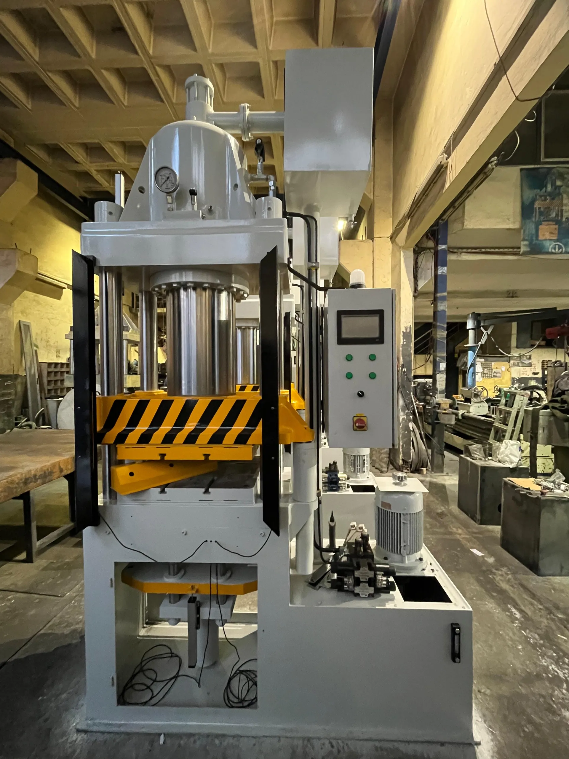Bu presler, ağırlıklı olarak otomotiv endüstrisinde kullanılmakta olup minimum 100 ton, maksimum 1000 ton kapasitelerde ve müşteri taleplerine uygun ölçülerde üretilmektedir. Üretimde kullanılan güvenilir ve yüksek kaliteli malzemeler sayesinde preslerimizin uzun ömürlü ve dayanıklı olması hedeflenmektedir. Bu presler özellikle balata (sürtünme malzemesi) üretimi için tasarlanmıştır.